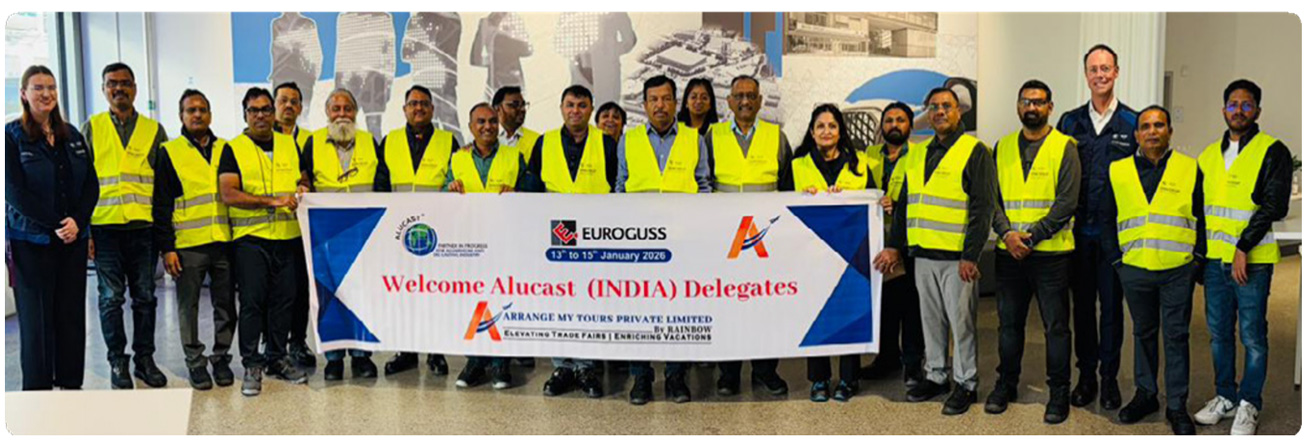ALUCASTled a Business Delegation of exhibitors and visitors to EUROGUSS 2026 - one of the world's leading international trade fairs dedicated to die casting, foundry technology, processes and applications at Nuremberg,G ermany from 13th to 15th January 2026 in collaboration with travel partner Arrange my Tours Pvt. Ltd.