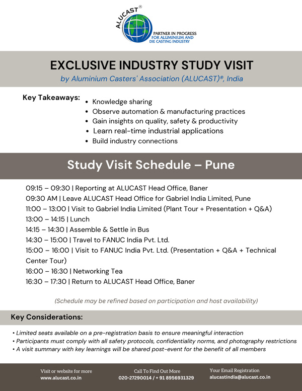 As part of our ongoing efforts to enhance industry knowledge and promote best practices, ALUCAST® is organizing this exclusive visit.