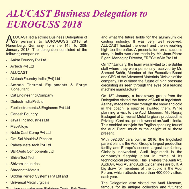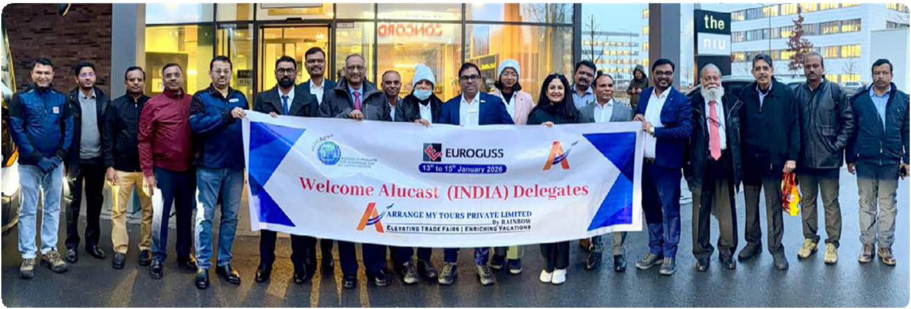 ALUCASTled a Business Delegation of exhibitors and visitors to EUROGUSS 2026 - one of the world's leading international trade fairs dedicated to die casting, foundry technology, processes and applications at Nuremberg,G ermany from 13th to 15th January 2026 in collaboration with travel partner Arrange my Tours Pvt. Ltd.