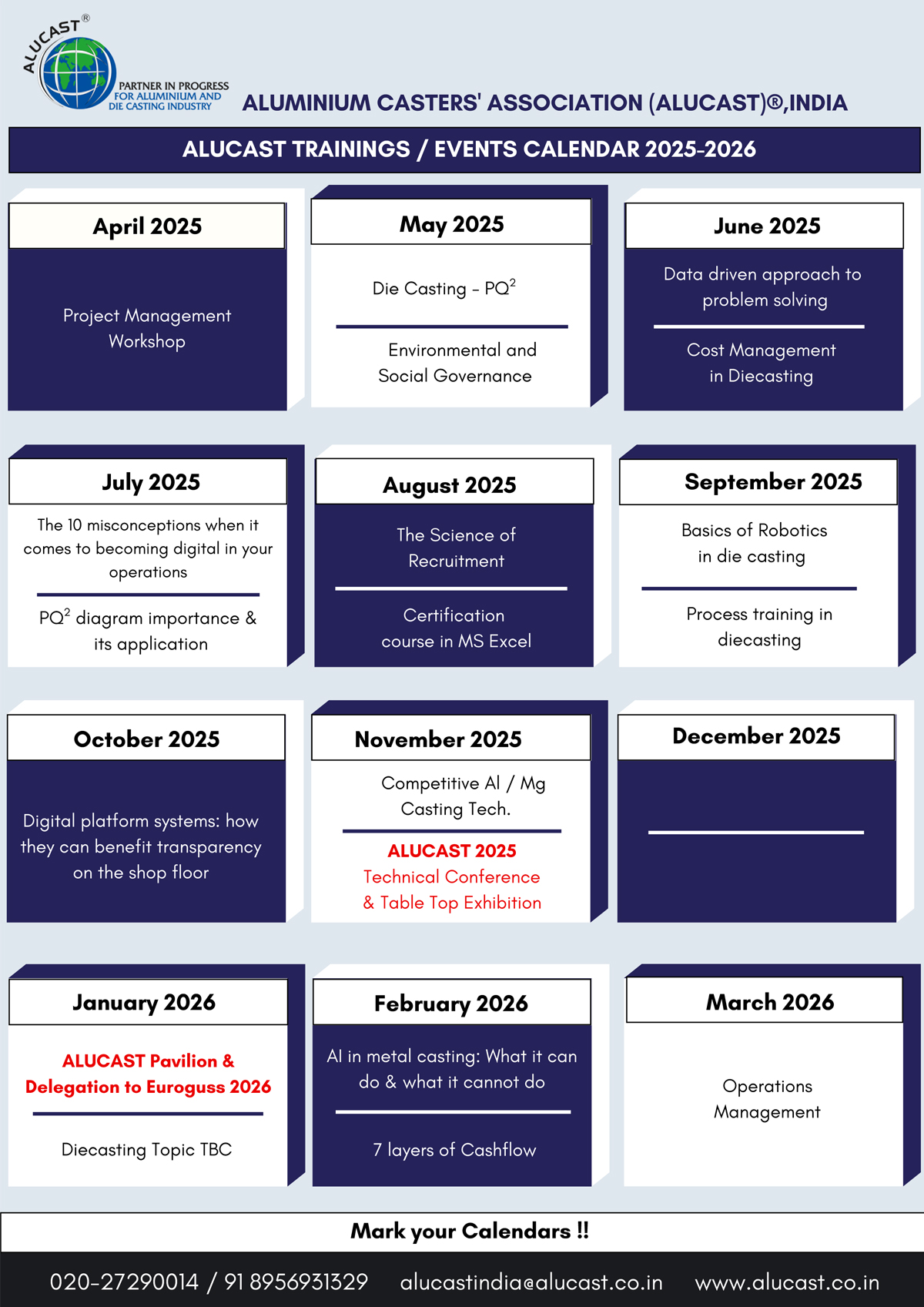 ALUCAST TRAININGS / EVENTS CALENDAR 2025-2026