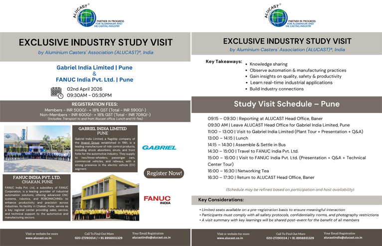ALUCAST organises industrial visits in India and globally to allow companies to see best practises and machineries available in aluminium casting industries.